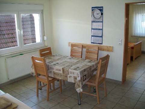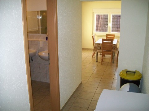 Wir haben für Zimmer 5+6 sowie für Zimmer 7+8 jeweils eine Küche mit Esszimmer.Die Küchen sind wie folgt ausgestattet: Mikrowelle, Elektroherd mit Backofen, Kaffeemaschine, Eierkocher und Geschirr.